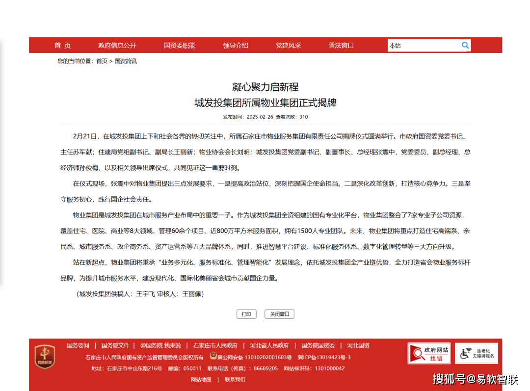 石家庄物业集团是石家庄城发投集团全资组建的国有专业化平台,是城发投集团在城市服务产业布局中的重要组成部分。