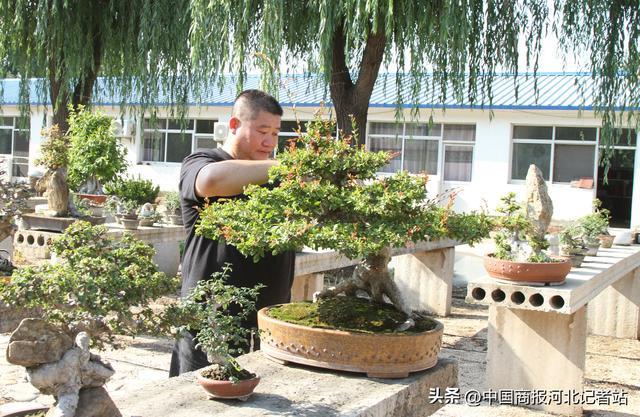 在河北省滦南县长凝镇西城子村滦南县森琪苗木种植专业合作社,10个温室大棚整齐排列,一片占地40亩的微型盆景基地正孕育着绿色财富。棚内种植着以火棘、石榴为主的微型盆景,形制各异的树冠与树头展现出精心培育的痕迹,年产量达12万盆。