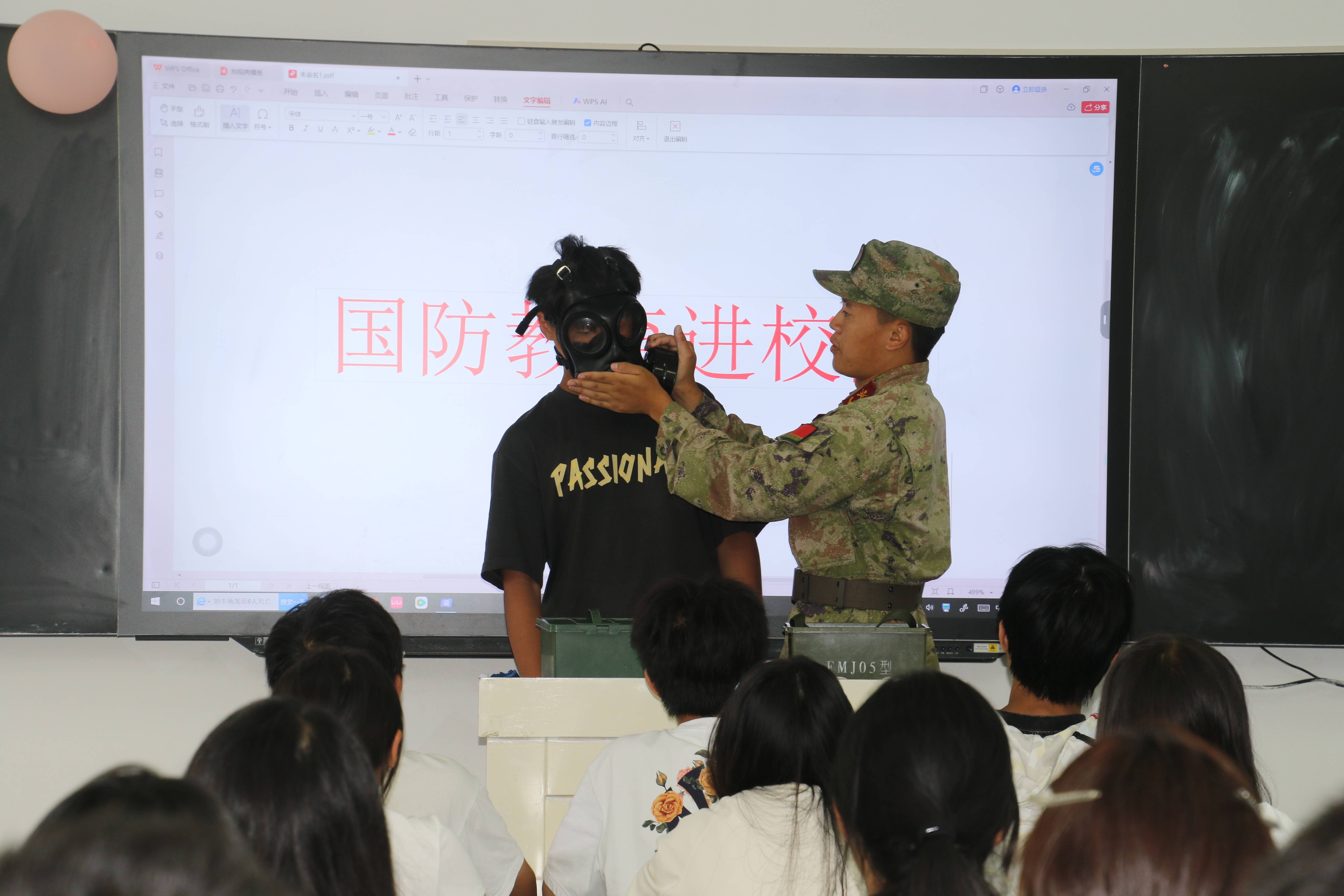 “调整头带松紧时要贴合面部,确保密闭性……”人武部民兵骨干走进传习中学,将国防教育课堂搬进班级。在教室里,民兵教官手持防毒面具,一边细致讲解其构造原理,一边现场演示佩戴步骤。同学们听得认真,还纷纷举手尝试,在实践操作中掌握了战伤救护技能。礼堂内,十大英模事迹展板整齐排列,英模人物的照片与事迹吸引了大批学生驻足观看,大家轻声诵读、相互交流,英模精神在潜移默化中浸润心灵。